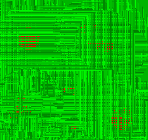 Bildmuster 8 enthält eine Kombination aus vertikalen und horizontalen Rasterlinien, die ausgehend von 10 Zentren im Bild (rot, zum Teil verdeckt) zu sich gegenseitig überlagernden Rastermustern mit hohem CPD-Wert zusammengesetzt sind.