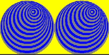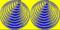 Zum Üben der 3D-Betrachtungsweise eignet sich eher ein größeres feststehendes Bild. Bei dem Übungsbild liegt der kleinste Kreis vorne vor dem Bildschirm, so dass der Eindruck einer Aufsicht auf die Spitze eines Kegels entsteht. |